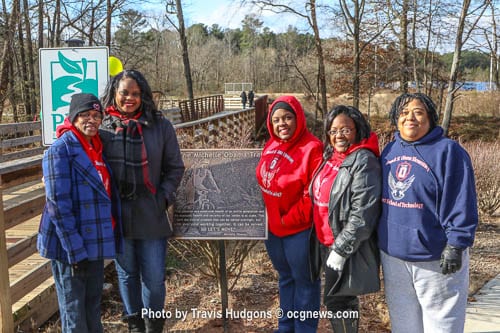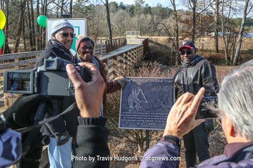 Dozens of people braved the cold weather to join DeKalb County Commissioner Larry Johnson and other officials and community leaders for the plaque unveiling ceremony of the historic naming of the Michelle Obama Walking Trail at Georgia State University-Perimeter College campus. The ceremony was held on Jan. 13.