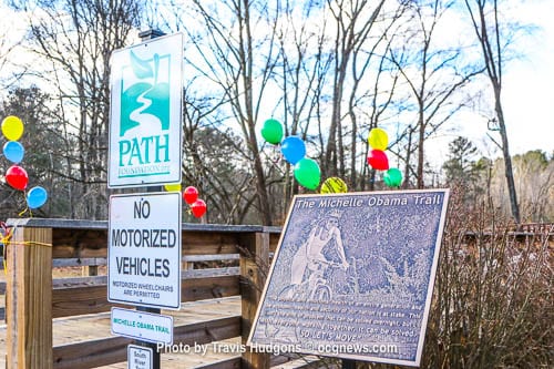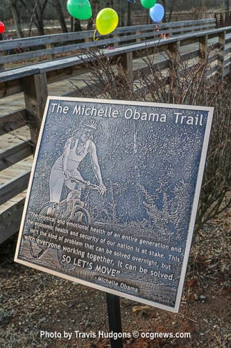 Inspired by Obama’s “Let’s Move” health initiative—a public health campaign to reduce childhood obesity, Commissioner Johnson said he wanted a walking trail to honor Obama and her passion of physical fitness.