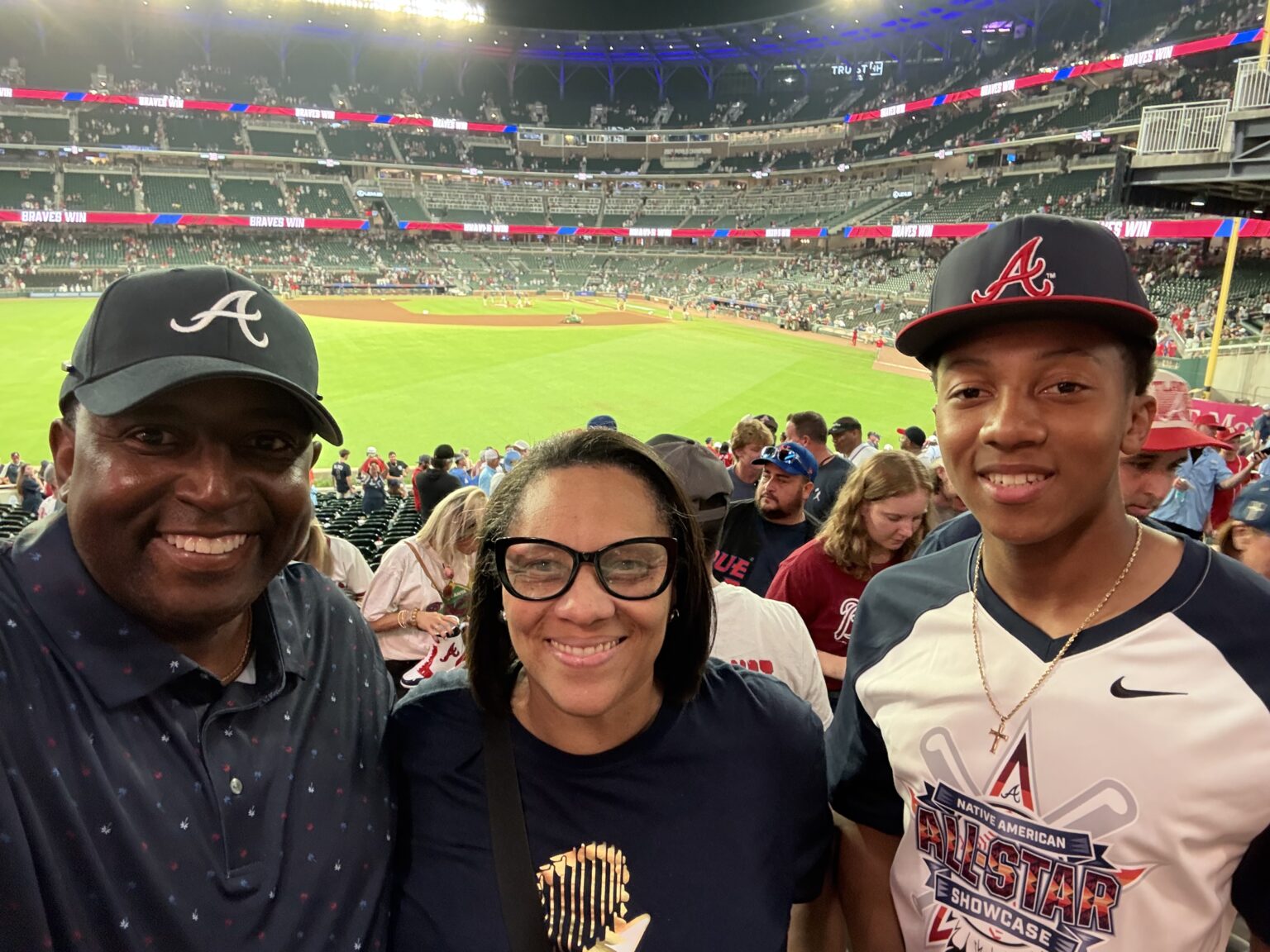 Pictured L-R: Ron Jones, II, wife, Michelle, and their son Ronald Jones, III attending the Braves vs. the New York Mets match on June 19, 2025. Photo provided.