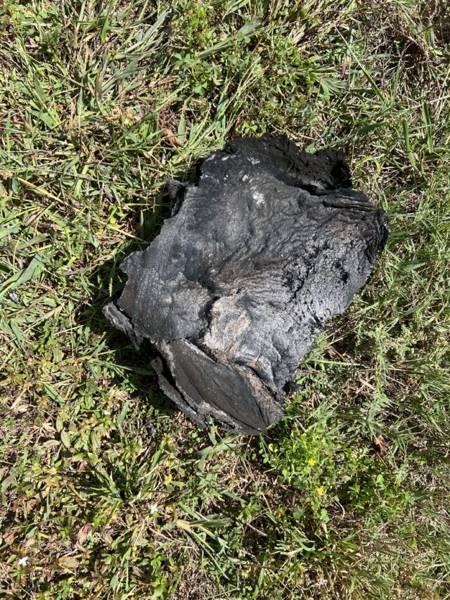 Residents are reporting big charred, black chunks of ash in their yards. Photo by Glenn L. Morgan