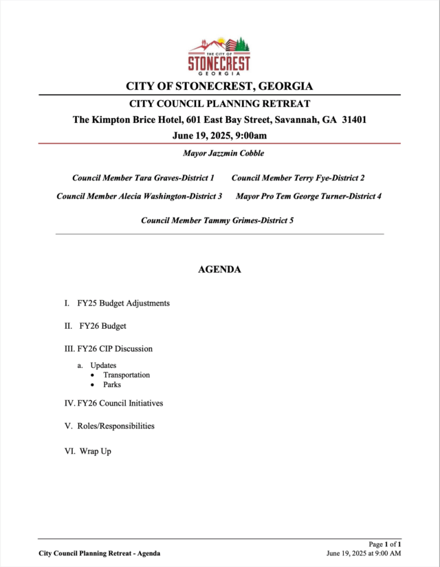 City of Stonecres NOTICE – City Council Strategic Planning Retreat, June 19, 2025