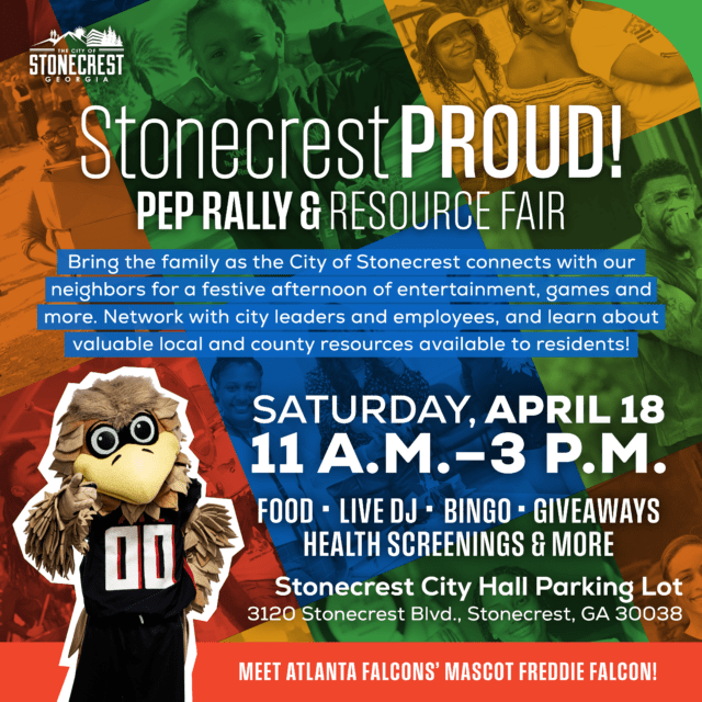 To kick things off, Stonecrest and DeKalb residents are invited to a free pep rally and resource fair on Saturday, April 18, from 11 a.m. to 3 p.m., at City Hall, 3120 Stonecrest Blvd.