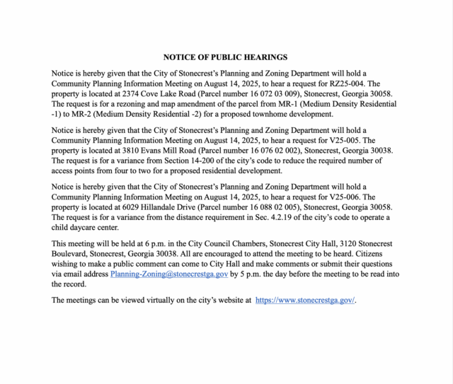 Home»Legal Notices»City of Stonecrest Community Planning Information Meeting, August 14, 2025