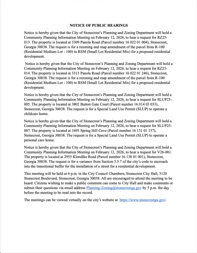 Home»Legal Notices»City of Stonecrest Community Planning Information Meeting, February 12, 2026