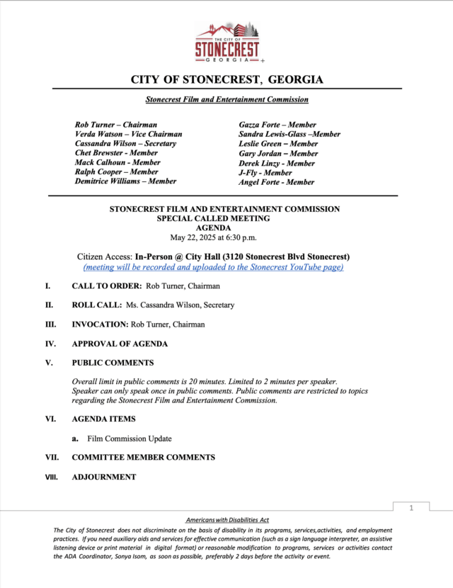 City of Stonecrest FILM Meeting May 22, 2025 @6:30