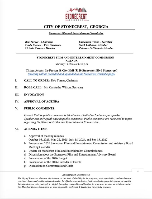 Home»Legal Notices»City of Stonecrest FILM Meeting