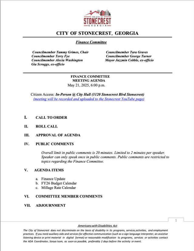 Home»Legal Notices»City of Stonecrest Finance Meeting May 21, 2025