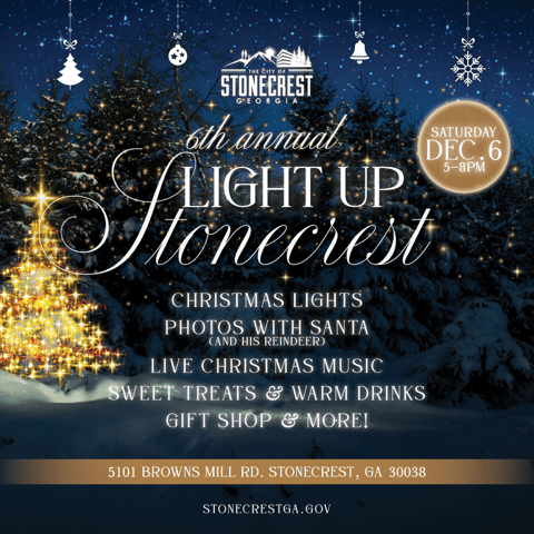 STONECREST, G—Enjoy an evening filled with festive fun for the whole family at the City of Stonecrest’s 6thAnnual Light Up Stonecrest on Dec. 6.