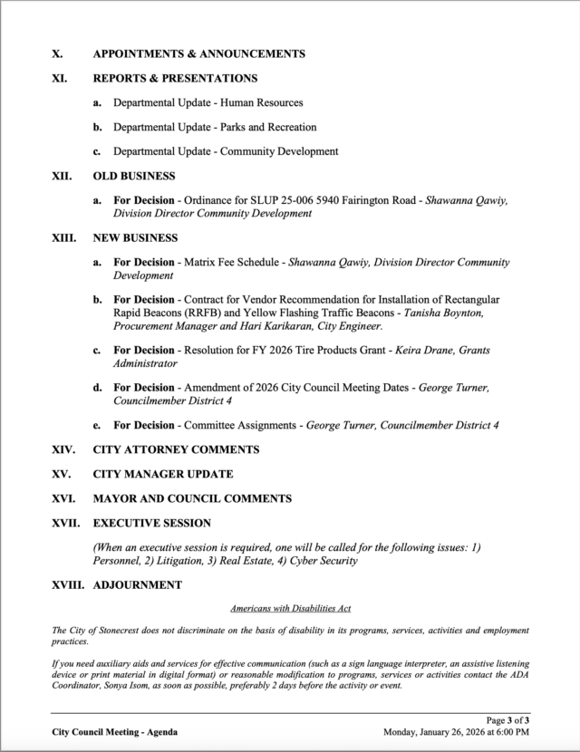 • City of Stonecrest NOTICE – City Council Meeting, January 26, 2026