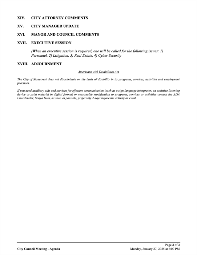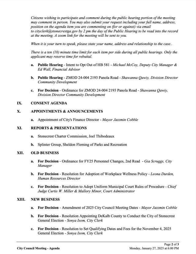 City of Stonecrest NOTICE – City Council Meeting, January 27, 2025