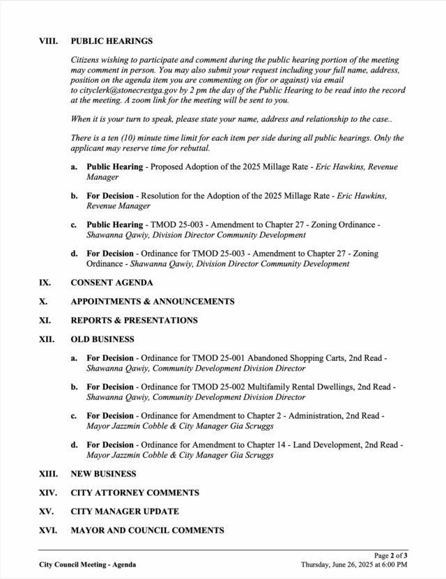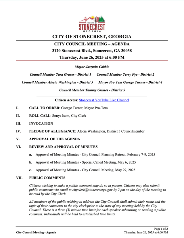 Home»Legal Notices»City of Stonecrest NOTICE – City Council Meeting, June 26, 2025