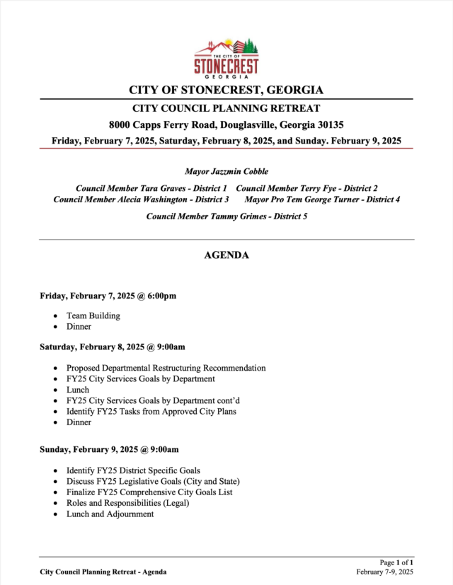 Home»Legal Notices»City of Stonecrest NOTICE – City Council Planning Retreat, February 7-9, 2025 – Final