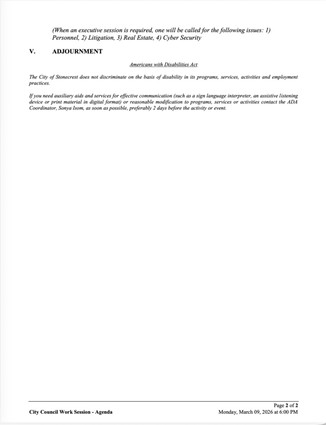 Home»Legal Notices»City of Stonecrest NOTICE -City Council Work Session, March 9, 2026