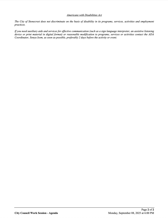 City of Stonecrest NOTICE – City Council Work Session, September 8, 2025