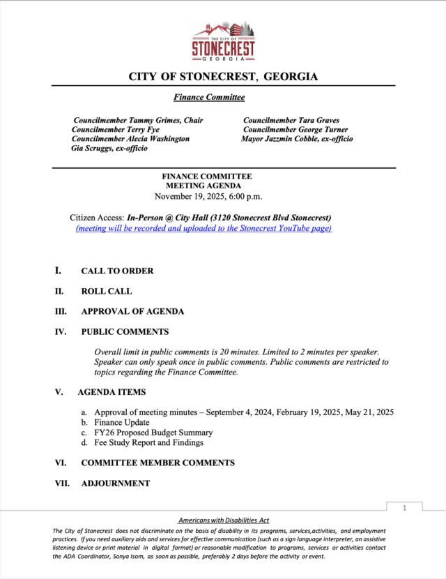 • City of Stonecrest NOTICE – Finance Committee Meeting, November 19, 2025