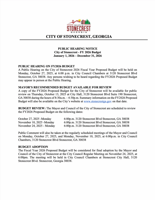 Home»Legal Notices»City of Stonecrest NOTICE – FY26 Budget Public Hearing Notice