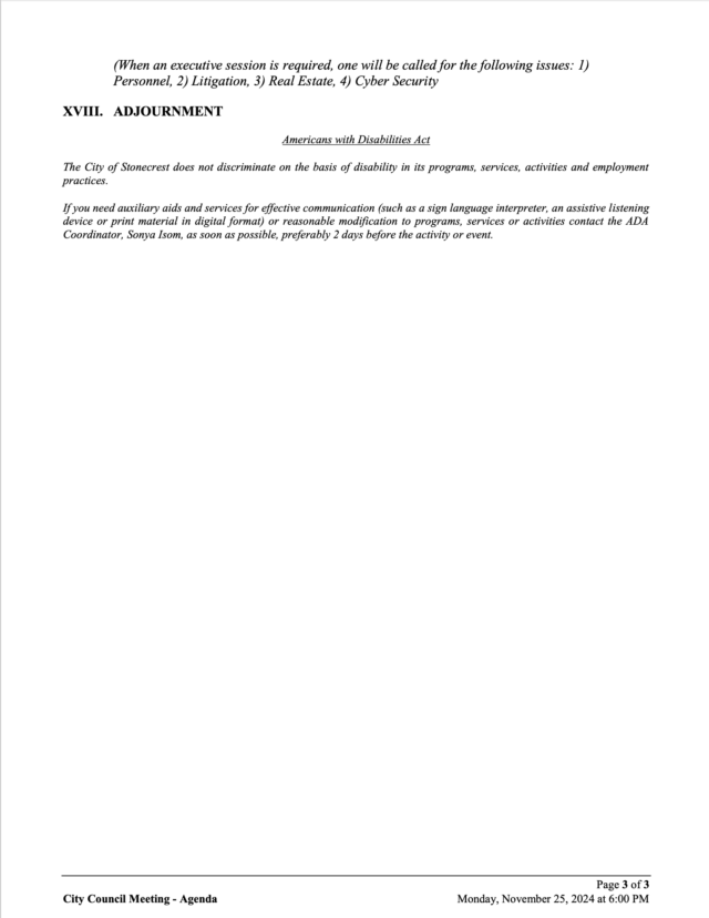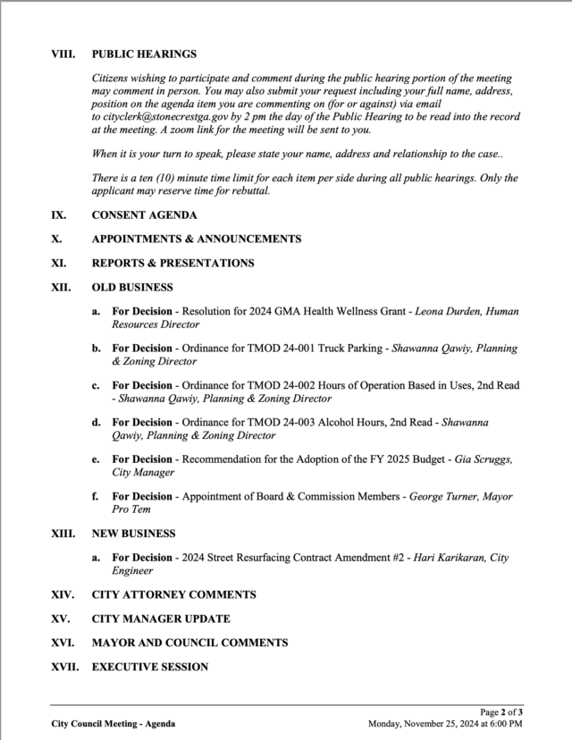 City of Stonecrest NOTICE – November City Council Meeting_11/25/2024