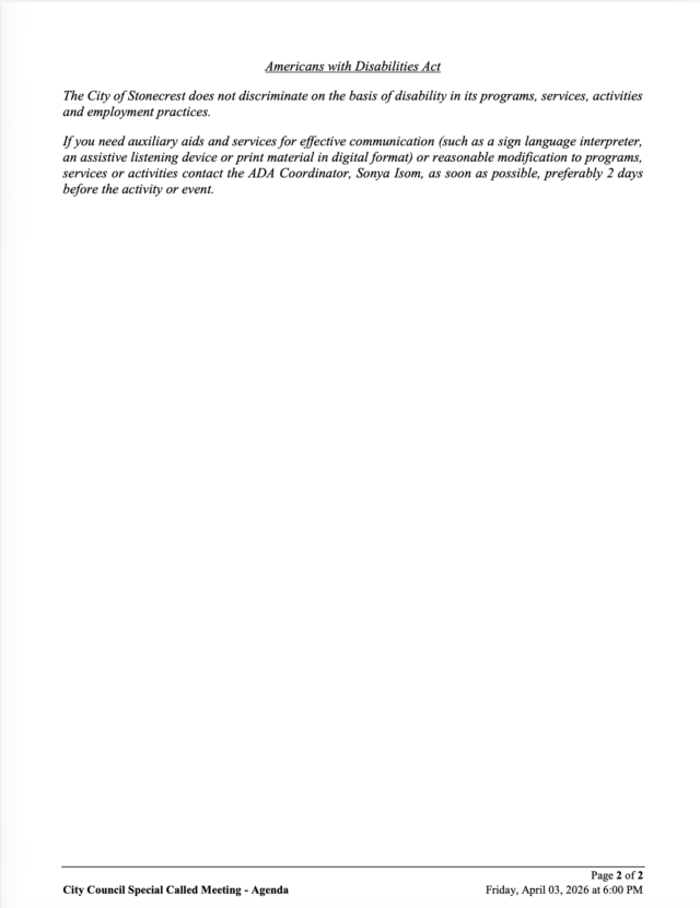 • City of Stonecrest NOTICE – Special Called Meeting, April 3, 2026 April 2, 2026