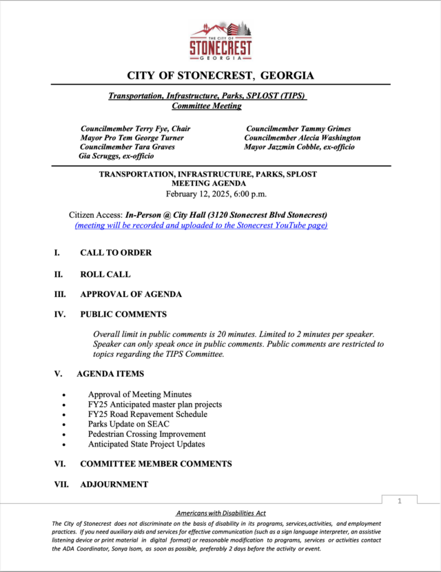 City of Stonecrest NOTICE – TIPS Meeting, February 12, 2025