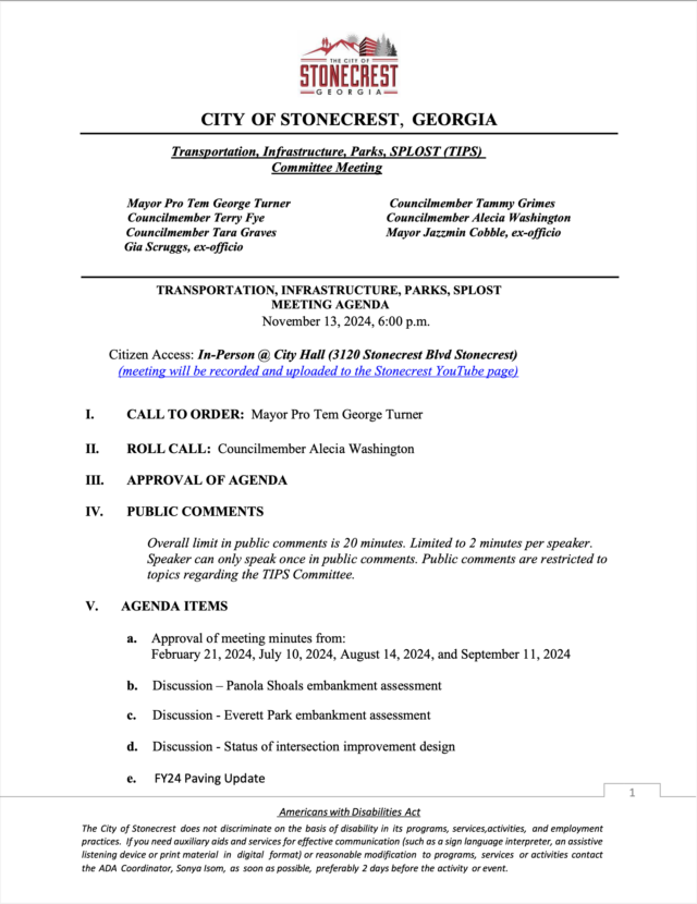 City of Stonecrest NOTICE – TIPS Meeting, November 13, 2024