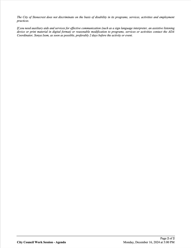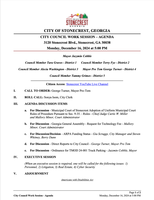 City of Stonecrest NOTICE – Work Session, December 16, 2024