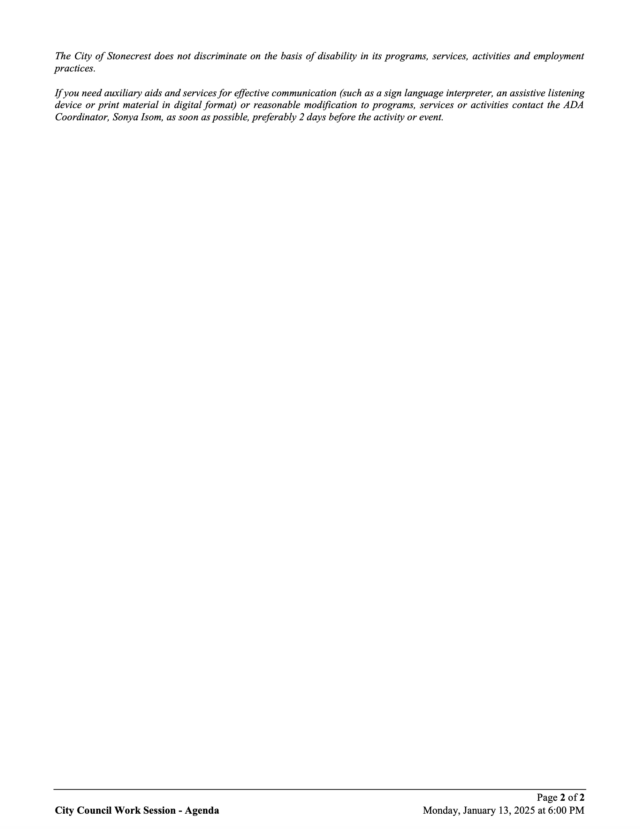 City of Stonecrest NOTICE – Work Session, January 13, 2025