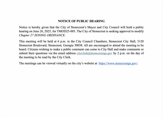 Home»Legal Notices»City of Stonecrest Planning and Zoning Public Hearing Notice – June 26, 2025