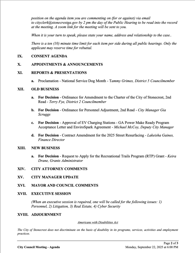 Home»Legal Notices»City of Stonecrest September City Council Meeting @ 6pm on 9/22/2025