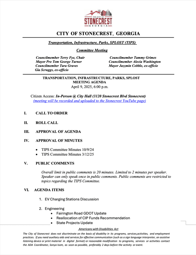 Home»Legal Notices»City of Stonecrest TIPS Meeting April 9, 2025