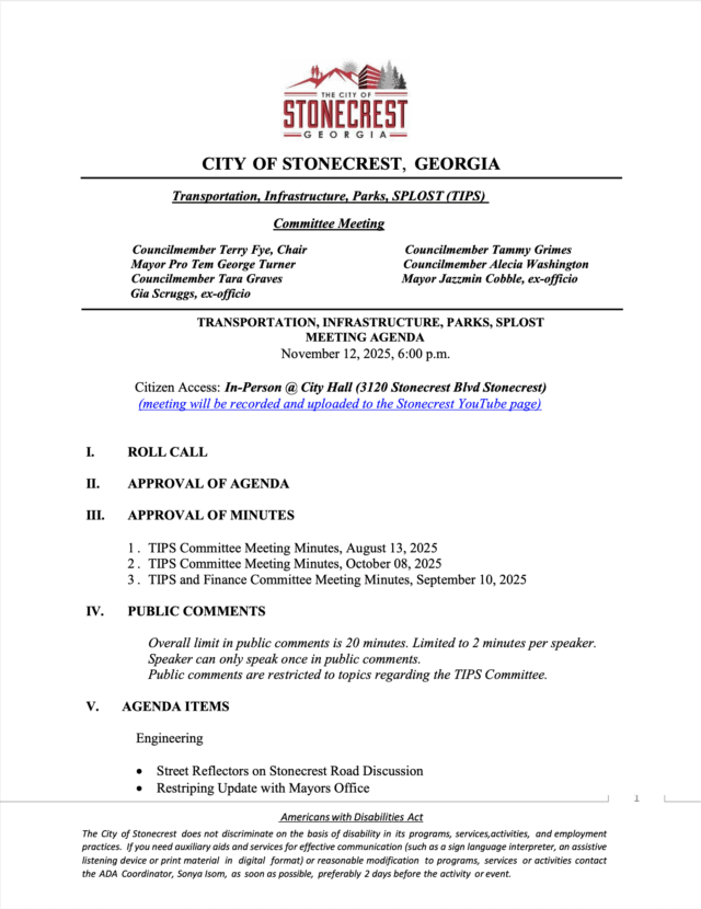 • City of Stonecrest TIPS Meeting November 12, 2025 @6pm