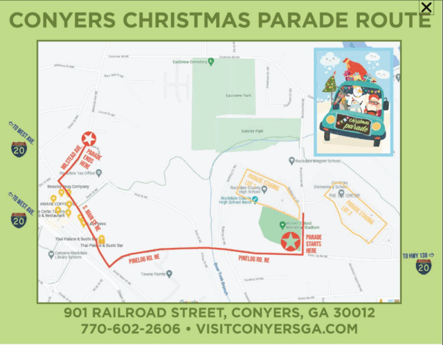 • Road Closures:Conyers Police will close Rowland Road, Pine Log Road and a portion of Milstead Avenue ahead of the parade.