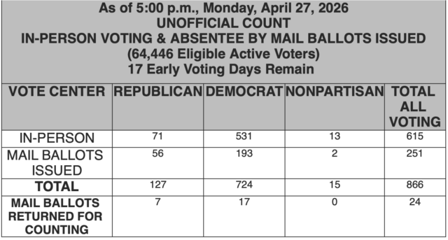 Below is a breakdown of ballots cast in-person and mail ballots issued.