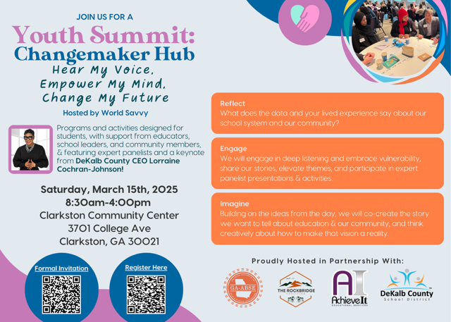 DeKalb County, GA – On Saturday, March 15, 2025, students, educators, school leaders, and community members from across DeKalb County will gather for “Changemaker Hub,” a day-long event designed to spark critical thinking and creativity about the future of education.