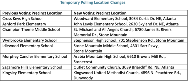 Home»Local News»DeKalb County Board of Registration and Elections announces temporary polling sites for May 19 General Primary, June 16 runoff