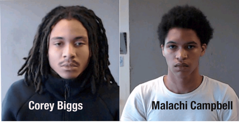 Corey Biggs and Malachi Campbell, both 20, were captured after a police chase and are now facing multiple charges including Aggravated Assault, Entering Auto, Possession of a Firearm During the Commission of a Crime, Theft by Receiving Stolen Property (Felony), and Fleeing and Eluding.