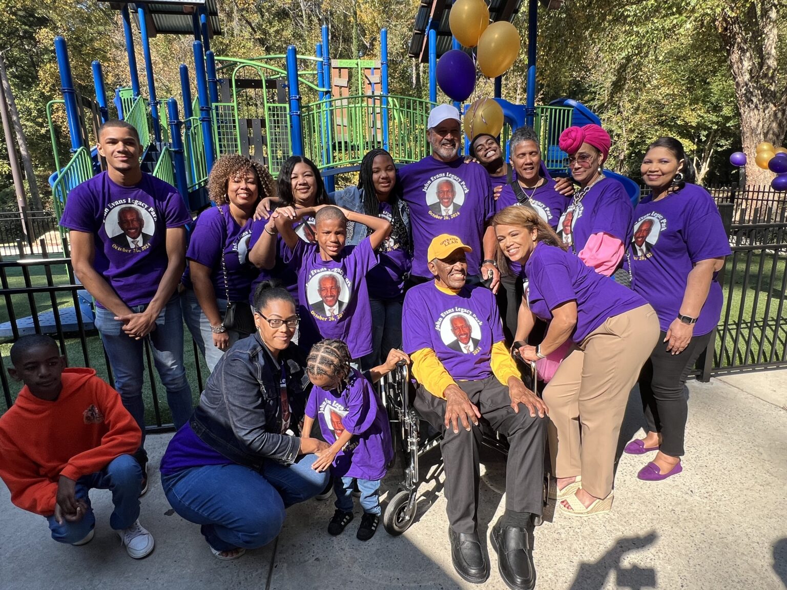 Cheers and applause erupted as the former 36-acre DeKalb County Shoal Creek Park III was renamed the John Evans Legacy Park. The park, located at 3075 McAfee Road in unincorporated Decatur, includes a children’s playground and a creek in a beautiful, serene setting that pays homage to the Muscogee and Creek Indigenous Nations.  The green space is one that community activist Barbara Mobley told those who attended the celebration now will be amplified by renaming the space in honor of a local trailblazer—John Evans.