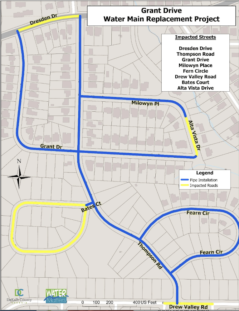 To learn more about the Grant Drive Water Main Replacement Project, join the virtual community meeting on Tuesday, Jan. 27, 6:30 p.m., via Zoom at https://dekalbcountyga.zoom.us/j/84587183962