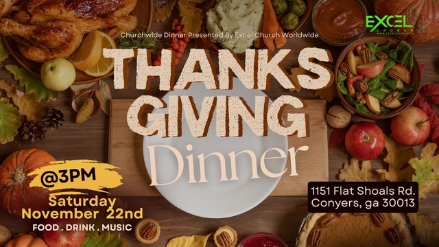 ROCKDALE COUNTY, GA—Excel Church Worldwide will host its Thanksgiving Turkey & Free Groceries Giveaway and a Thanksgiving Community Dinner on Saturday, Nov. 22.