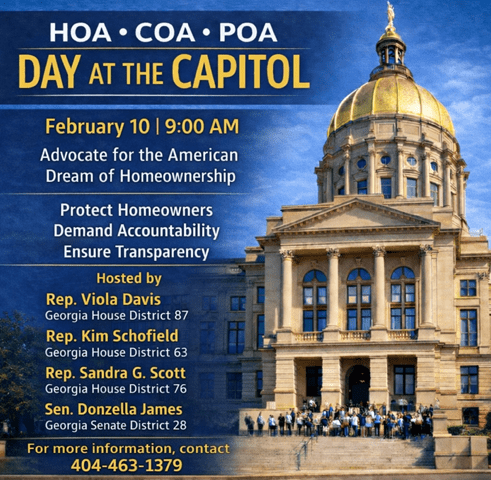 • Georgia legislators set new date for HOA, COA and POA Day to Advocate for Homeowner protections at State Capitol