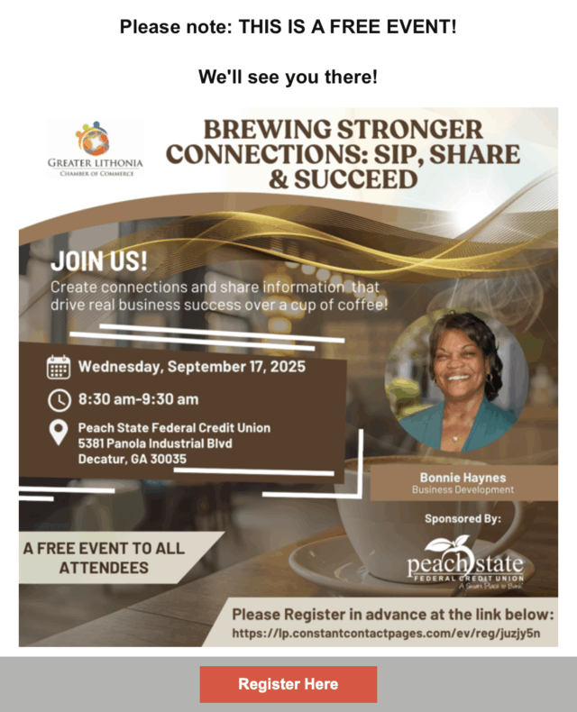DECATUR, GA–The Greater Lithonia Chamber is launching a Coffee Connections Networking segment on Wednesday, Sept. 17.