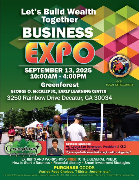 DECATUR, GA — Greenforest Community Baptist Church’s Social Justice Ministry invites the community to its Business Expo on Saturday, Sept. 13, from 10 a.m. to 4 p.m., at Greenforest Early Learning Center, 3250 Rainbow Drive, Decatur.