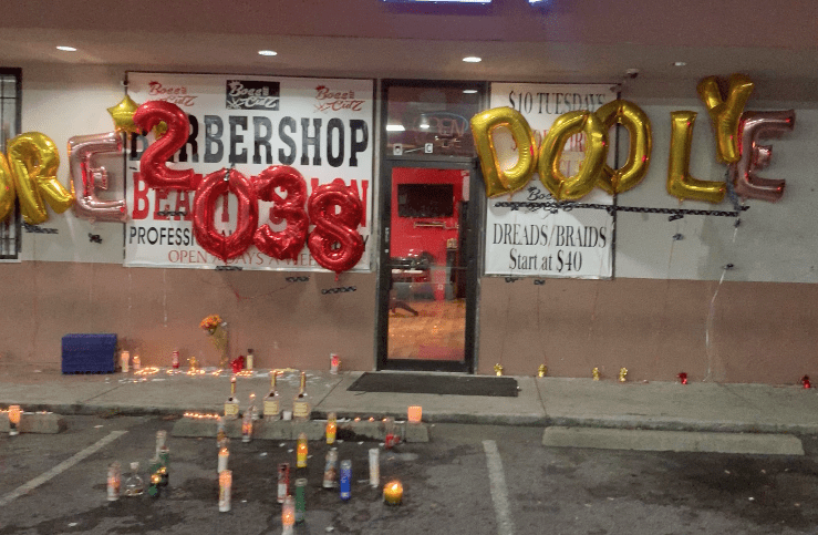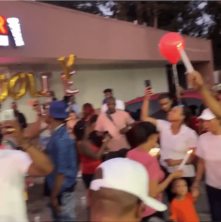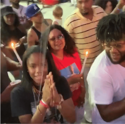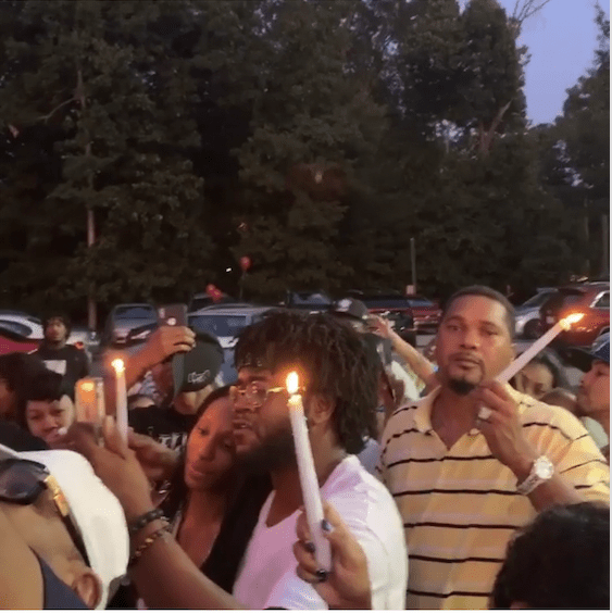 Hundreds of people packed out a Lithonia Chevron parking lot for a candlelight vigil on Saturday, July 27, to honor Drevon Corion LeBlanc. The young man passed away on Friday, July 26, while at the barbershop at the intersection of South Deshon and S. Stone Mountain-Lithonia roads. He was 21 years old.