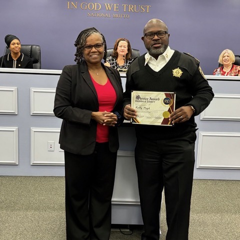 ROCKDALE COUNTY, GA—The Rockdale Board of Commissioners recently honored four longtime staff members of the Rockdale Sheriff’s Office who received their Years of Achievement Awards for their dedication, hard work and commitment to the community.