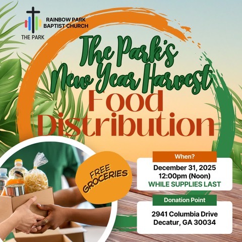 DEKALB COUNTY, GA—Rainbow Park Baptist Church is hosting a community food distribution on Dec. 31, at noon, 2941 Columbia Drive, Decatur.