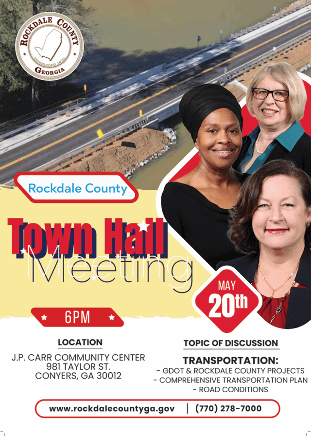 ROCKDALE COUNTY, GA—The Rockdale County Board of Commissioners (BOC) will host its monthly evening town hall meeting on Tuesday, May 20, 6 p.m., at J.P. Carr Community Center, 981 Taylor St., Conyers.