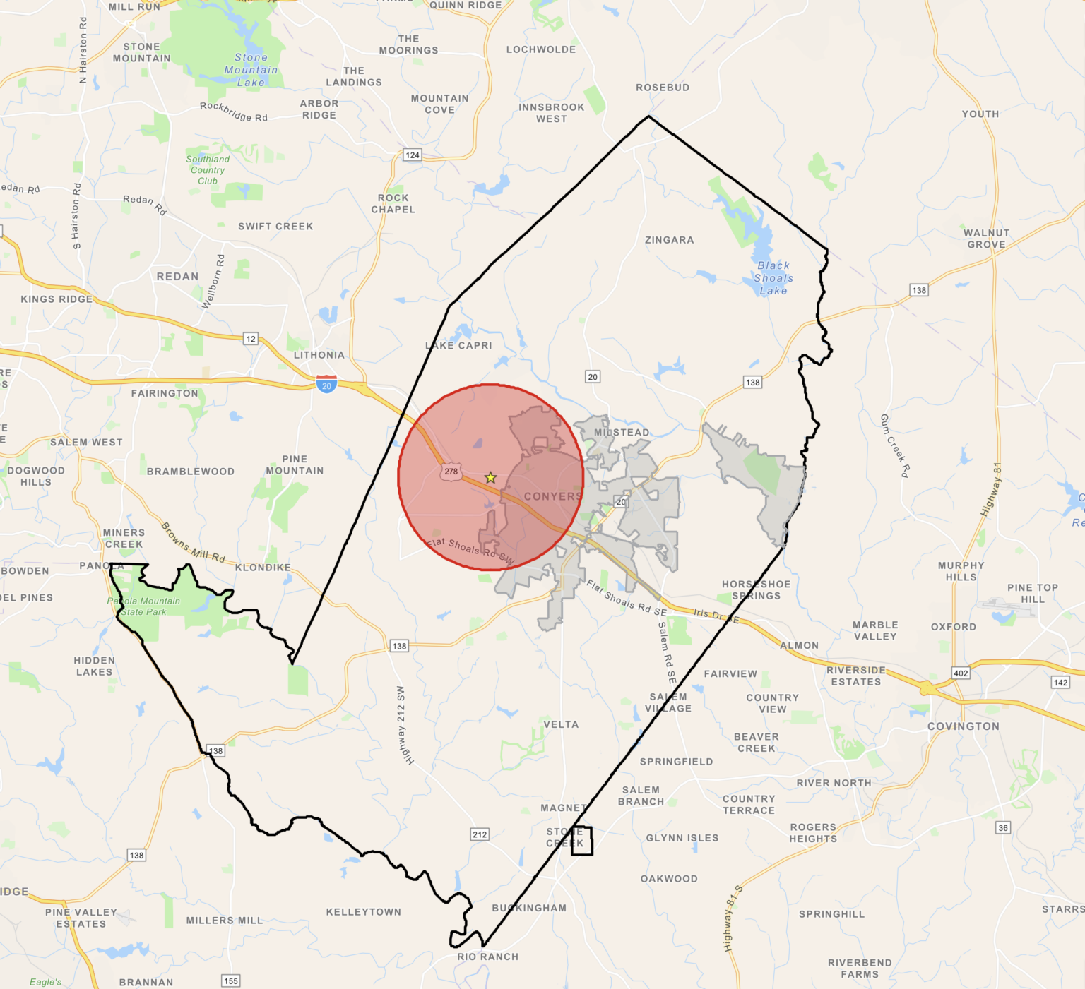 A map outlining the two-mile radius included in the shelter in place can be found on the Rockdale County website. An affected address look-up can be found at the following link: https://rb.gy/iovq3g.