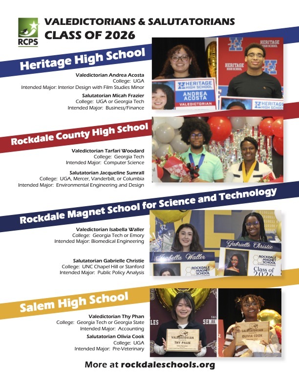 • Rockdale County Public Schools announces Class of 2026 Valedictorians and Salutatorians