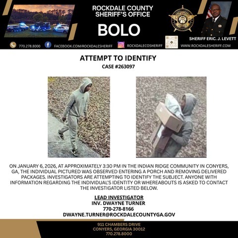 • Rockdale County Sheriff’s Office seeking to identify porch theft suspect