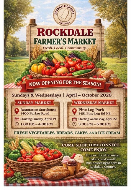 ROCKDALE COUNTY, GA— The Rockdale Farmer’s Market is opening for the season on Sunday, April 19, in Conyers.