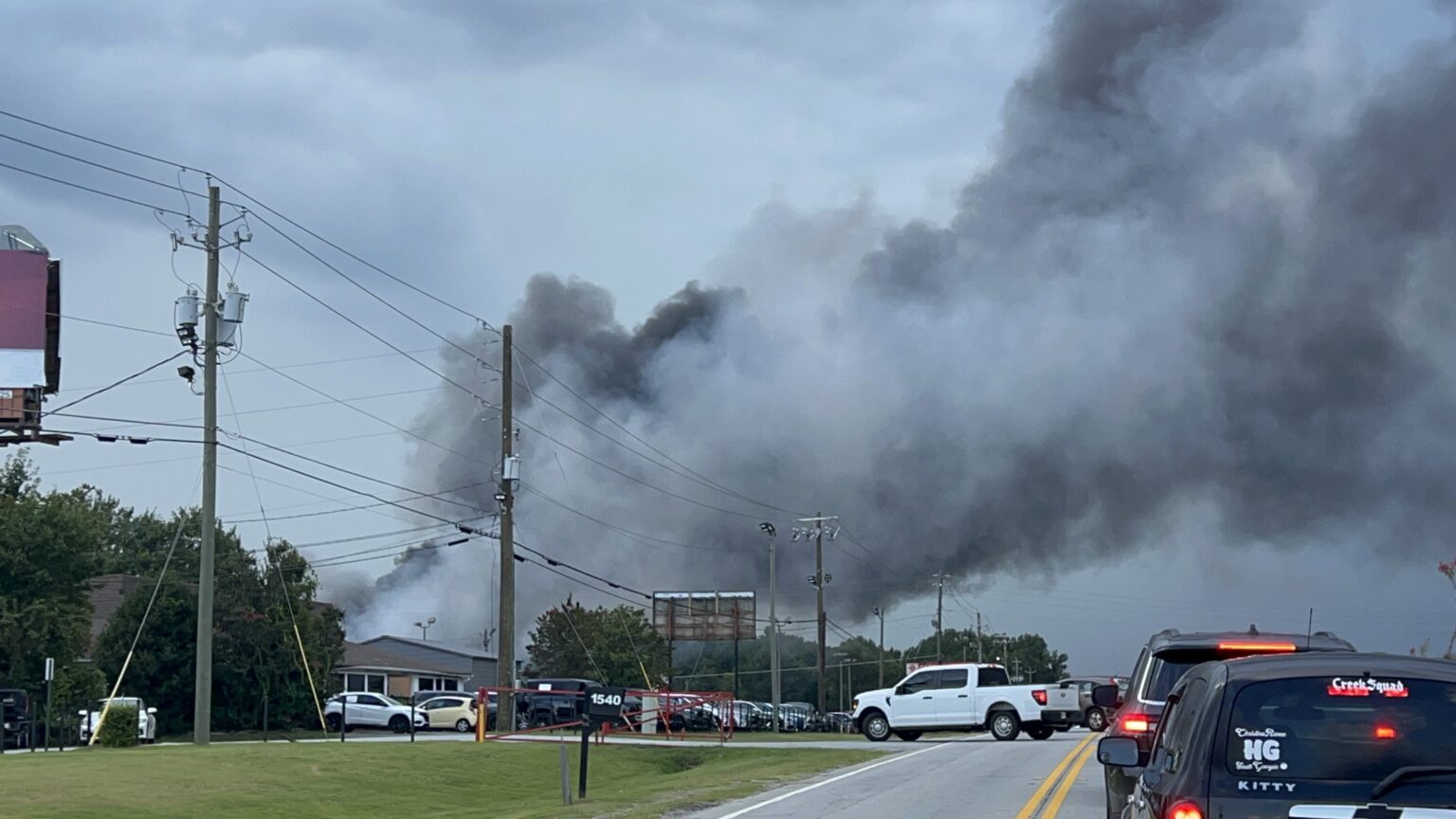 ROCKDALE COUNTY, GA– Rockdale fire crews are at the scene of an auto body shop at 1636 Iris Drive responding to a fire. Plumes of dark smoke were visible near I-20 and West Avenue around 6 p.m. today, July 31.